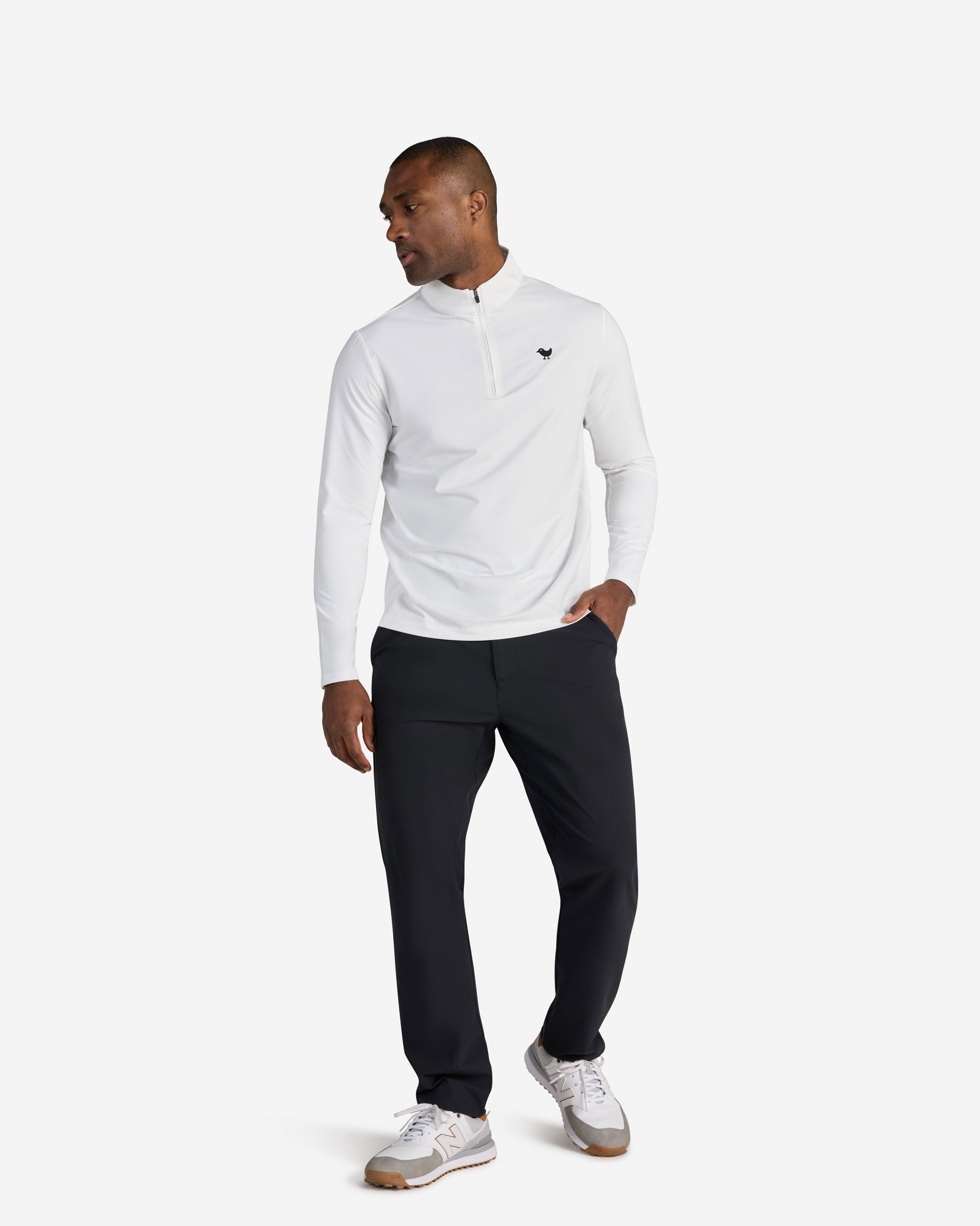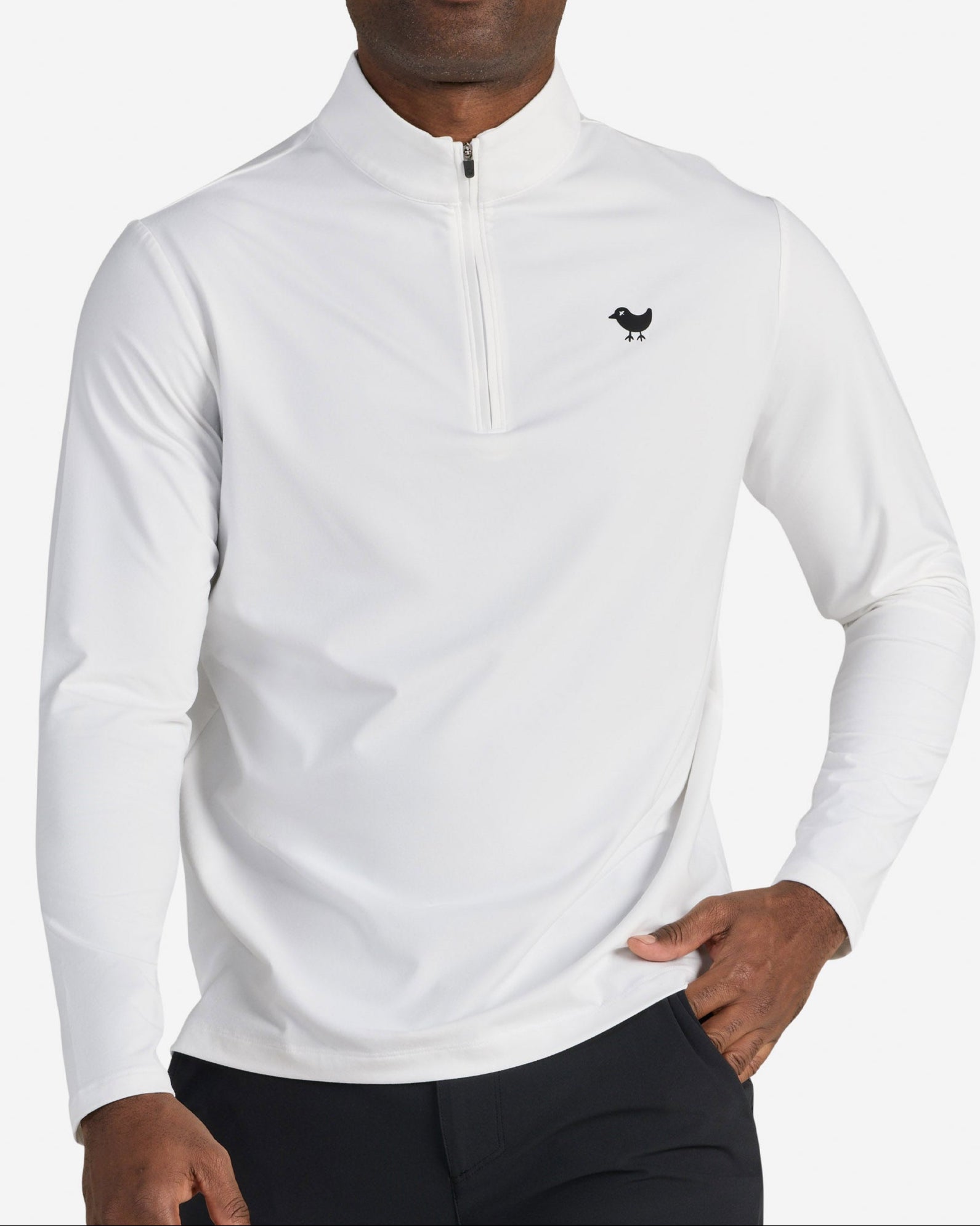 Speed meets style in this game-changing quarter zip. Cloud Dancer colorway brings ethereal elegance to high-performance design. Move like lightning, look like poetry.
