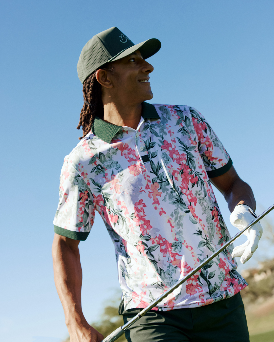 A Spring collection with performance fabrics, bold prints, and a fit engineered for the course