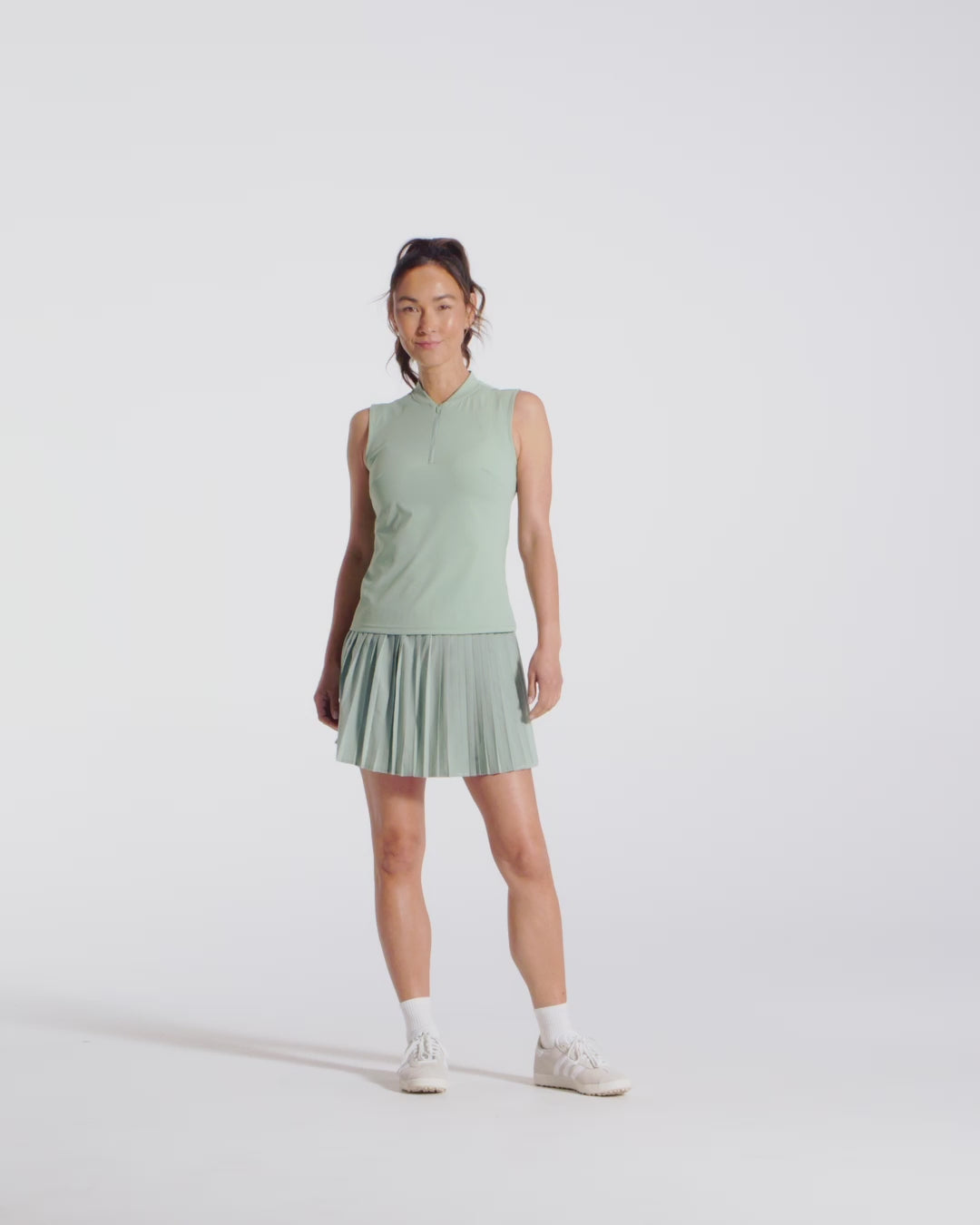 The blade collar polo. A fitted, lightweight take on our women's sleeveless polo. Equipped with center front zipper. Made out of Polyamide warp knit fabric known for it's durability without sacrificing comfort or softness.