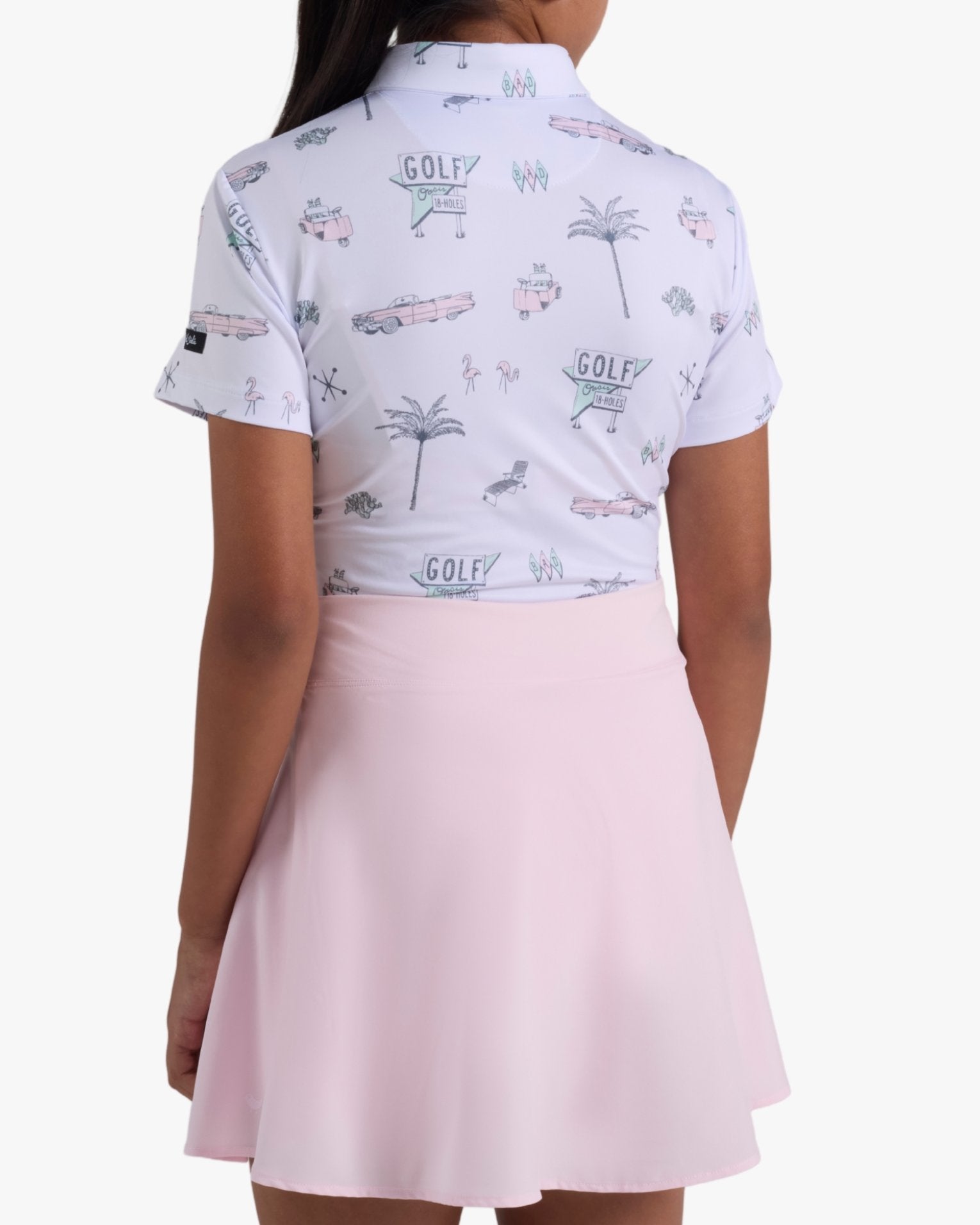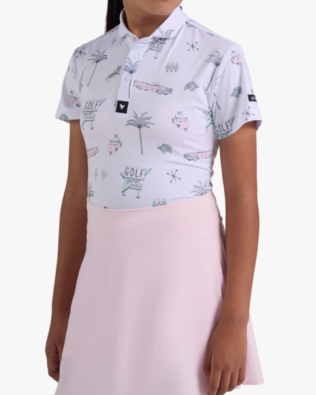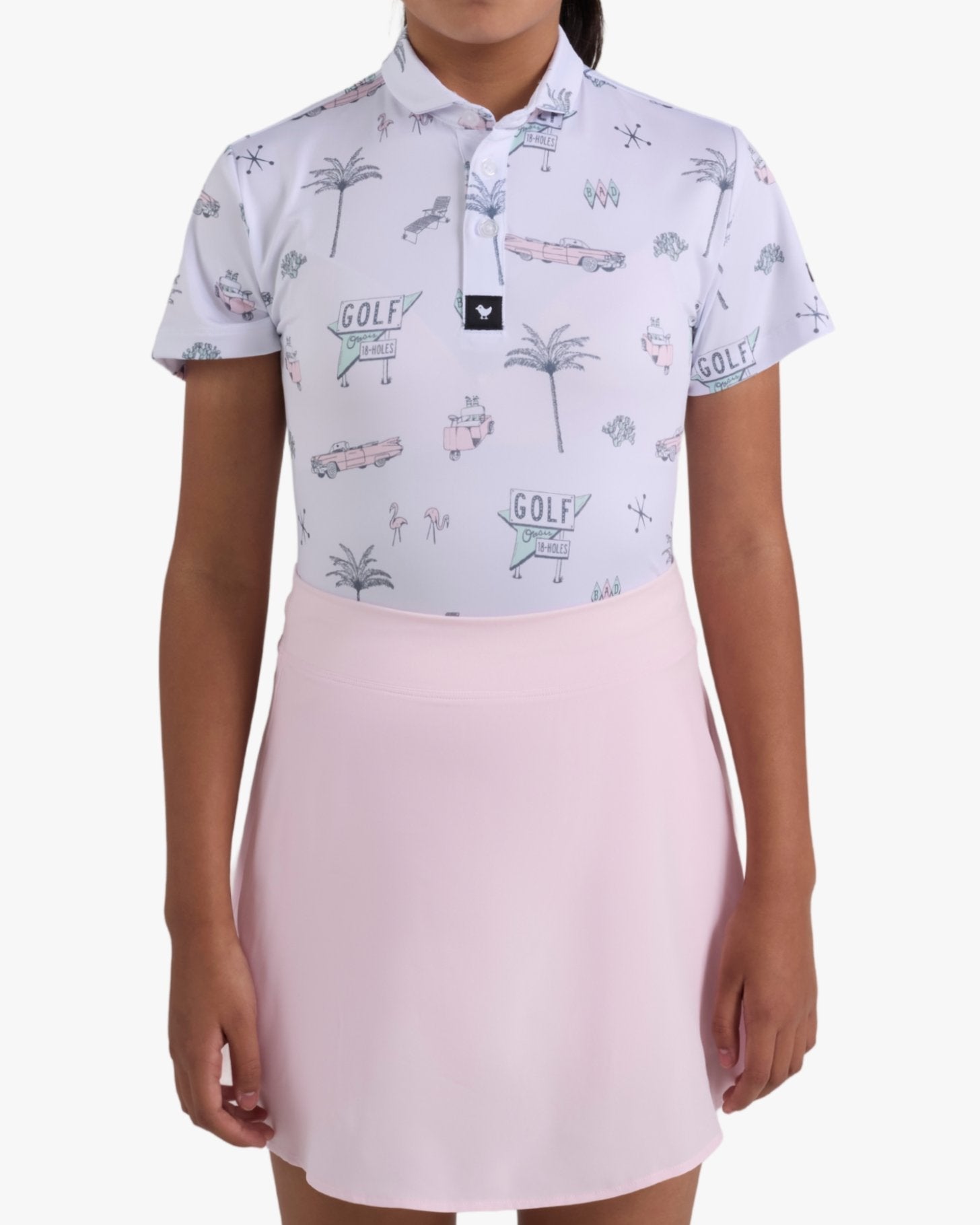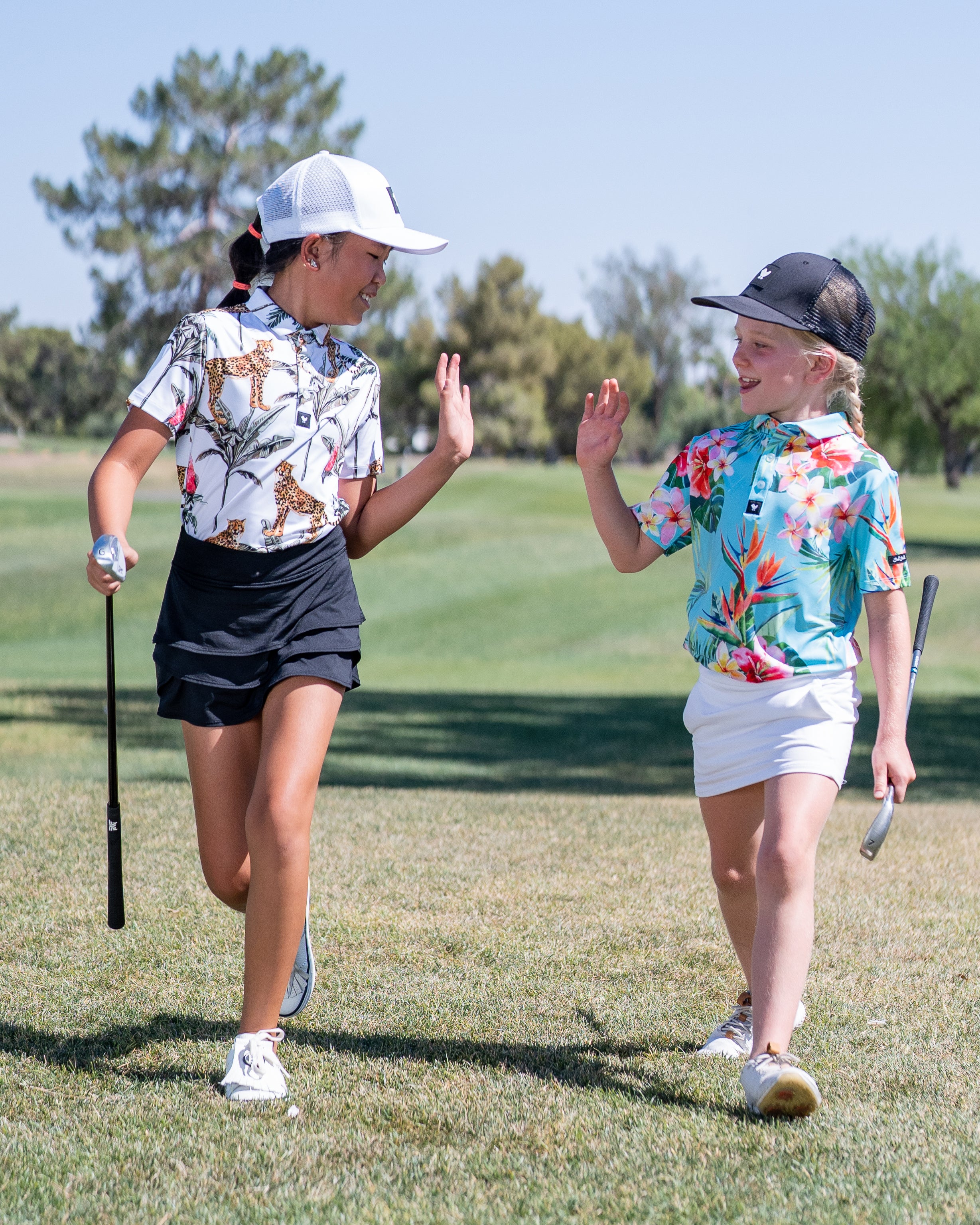 Premium youth golf polos designed with 4-way stretch, moisture-wicking fabric, and UPF 50 sun protection—because the next generation deserves performance gear as bold as their game.