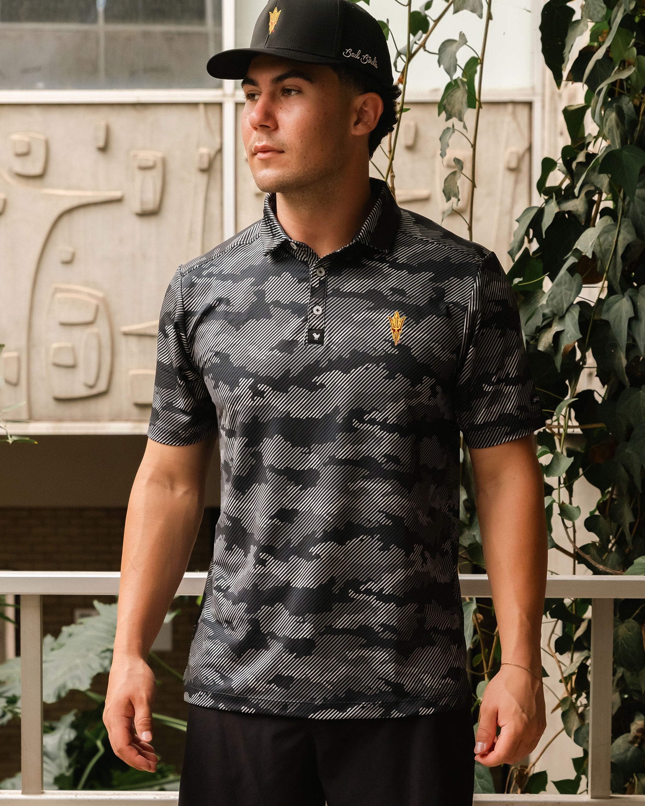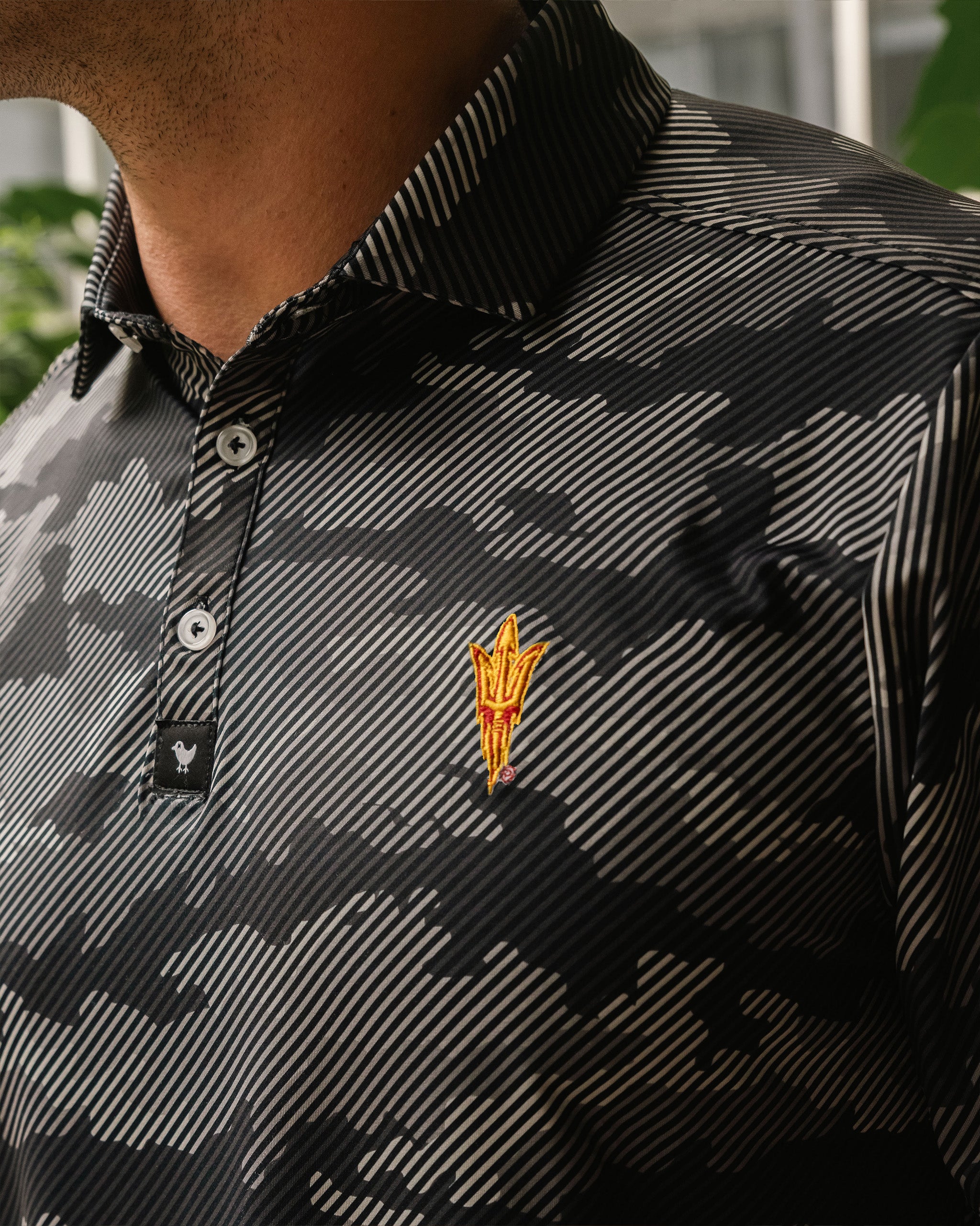 Cool as a desert night and twice as bold. This Frostbite polo in Granite hits different with officially licensed ASU Pitchforks worked into our signature pattern. Moisture-wicking performance meets Sun Devil pride in a colorway that stands out from every boring solid in the foursome. Perfect for making your U of A buddy sweat—literally and figuratively.