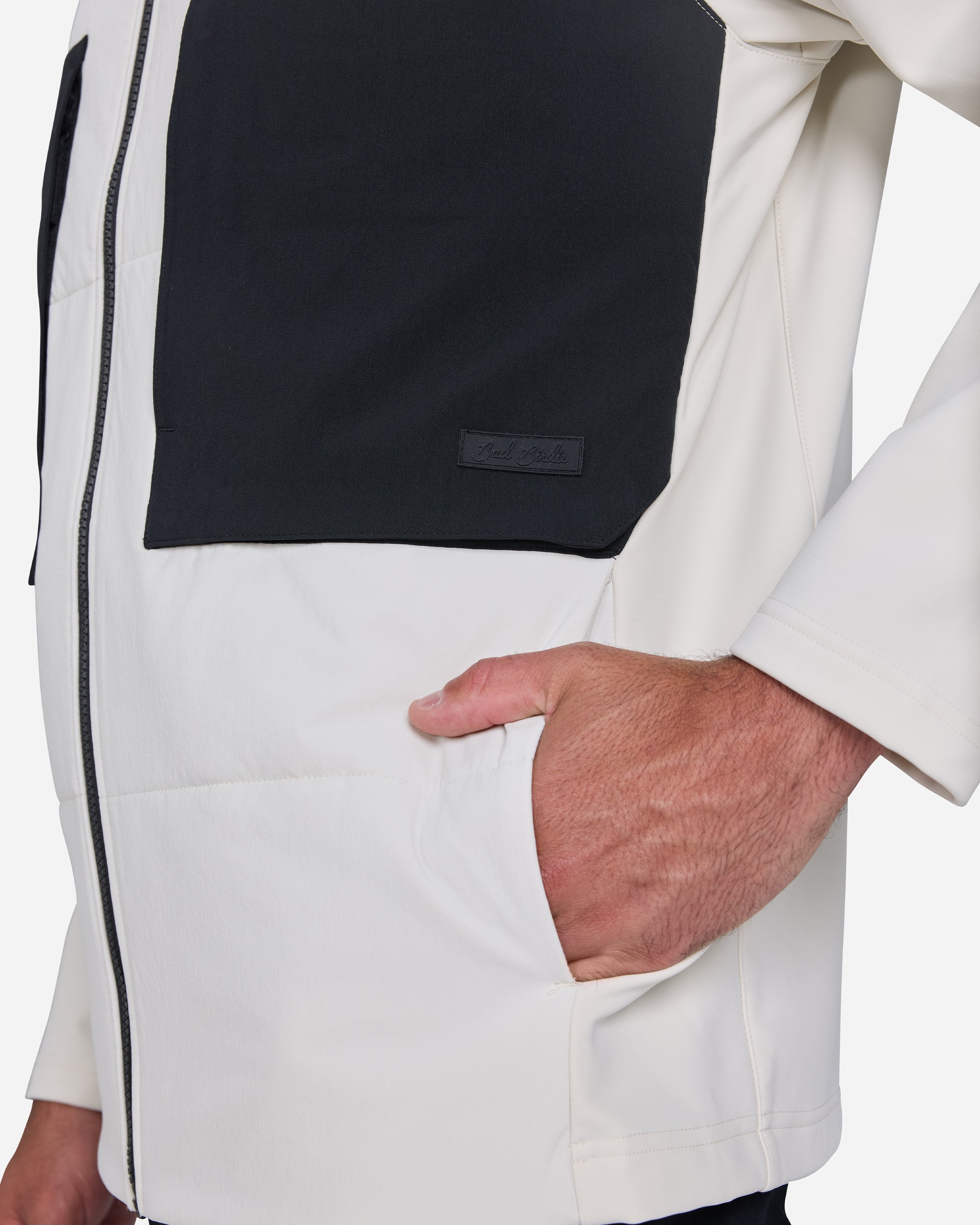 The Bad Elements Montage Jacket is designed to keep you warm without limiting movement. It features 80g synthetic insulation on the front and back yoke, with soft shell sleeves and side panels lined with a brushed interior. The DWR coating offers light rain protection, while zippered chest pockets with a tee holder, open hand pockets, and a Vislon front zipper add functionality. Finished with elastic cuffs, a silicone Bad Birdie patch, and a back locker loop with the Birdie logo.