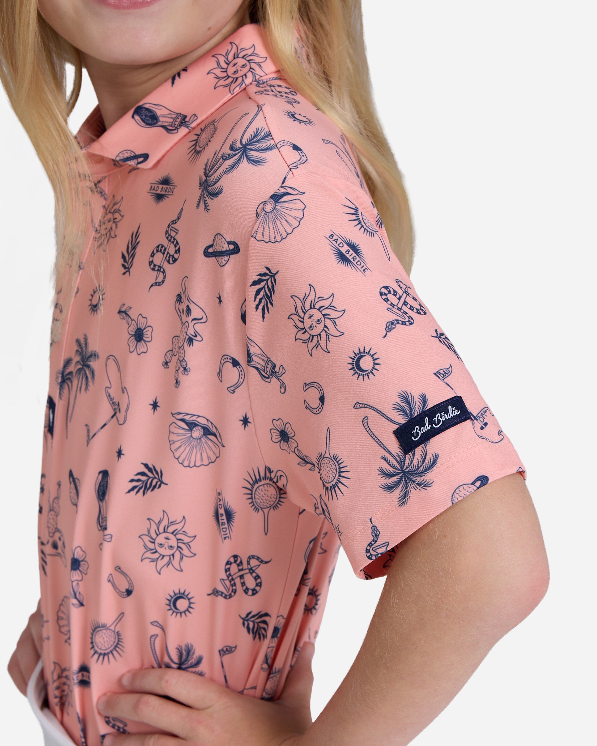 Start 'em young and watch them go low. The Bad Birdie Youth Performance Polo brings our signature bold style to golf's next generation. These aren't just mini versions of our legendary designs—they're built specifically for young players who aren't afraid to stand out and make some noise on the course. When the kids look this good, the future of golf is in good hands.