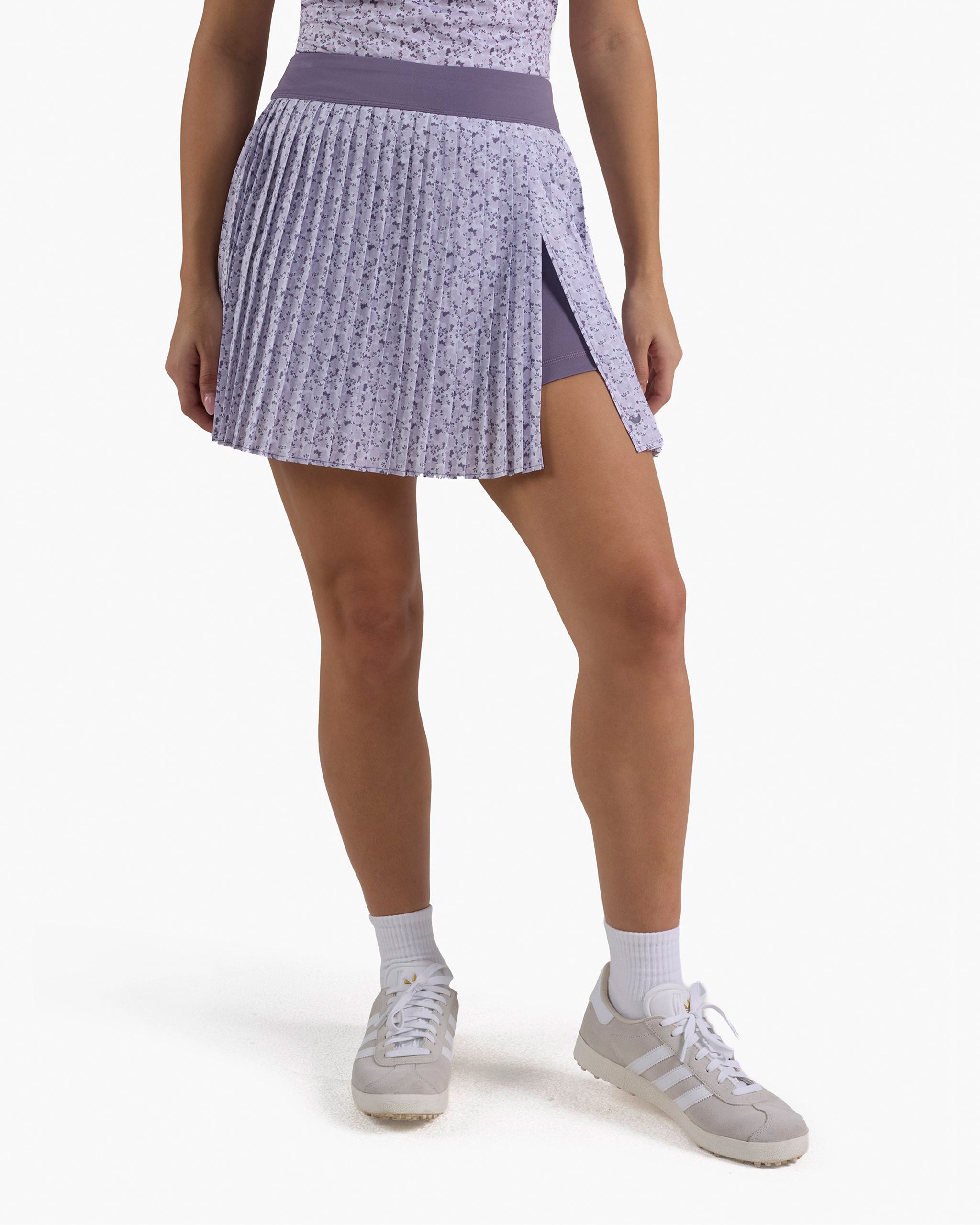 Our most popular skort for a reason. Trend-forward mini pleat design with a front slit for ease of movement and a full biker short liner with hidden pockets. Lightweight pleating keeps it flattering, while the 16" inseam hits the perfect length. Straight waistband includes a hidden key pocket for secure storage. Works on the course and off.