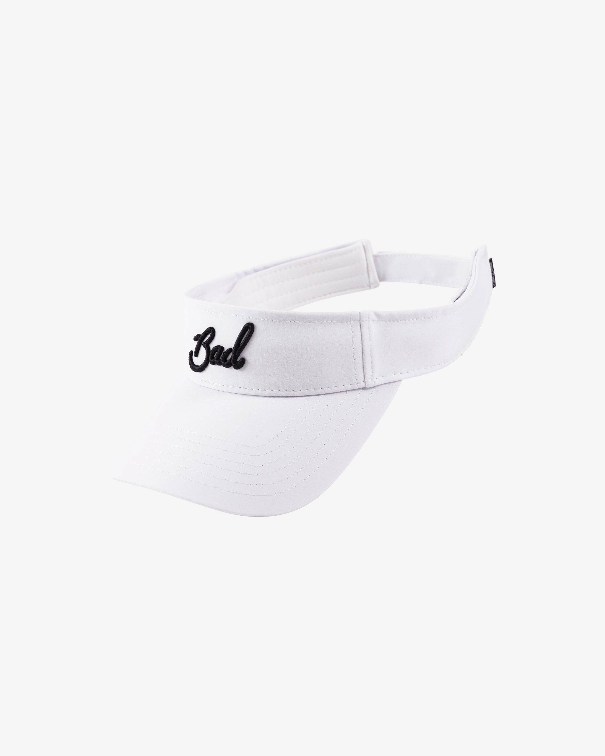 A new take on the the classic Bad Hat. A sun visor with an adjustable velcro strap, donning an embroidered "Bad" on front of visor.