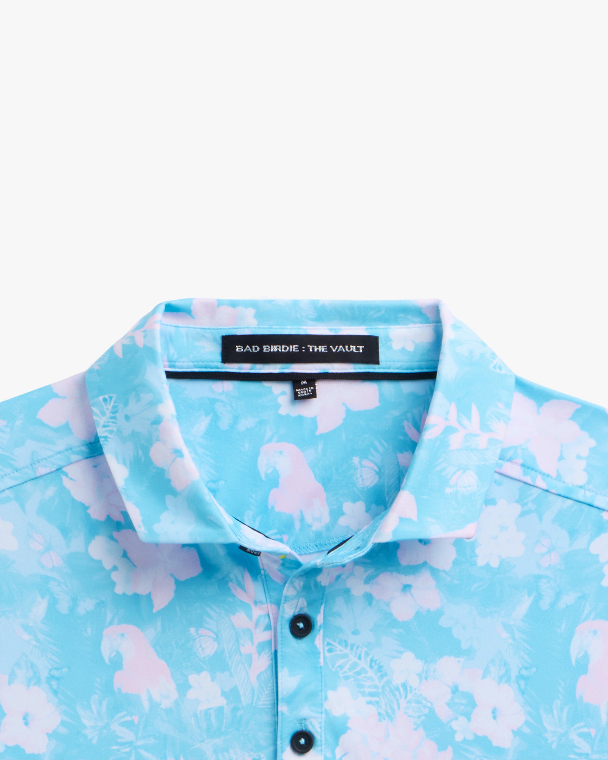 The Vault collection features original prints updated with refined trims, including metallic silver labels, branded buttons, and elevated collar details.