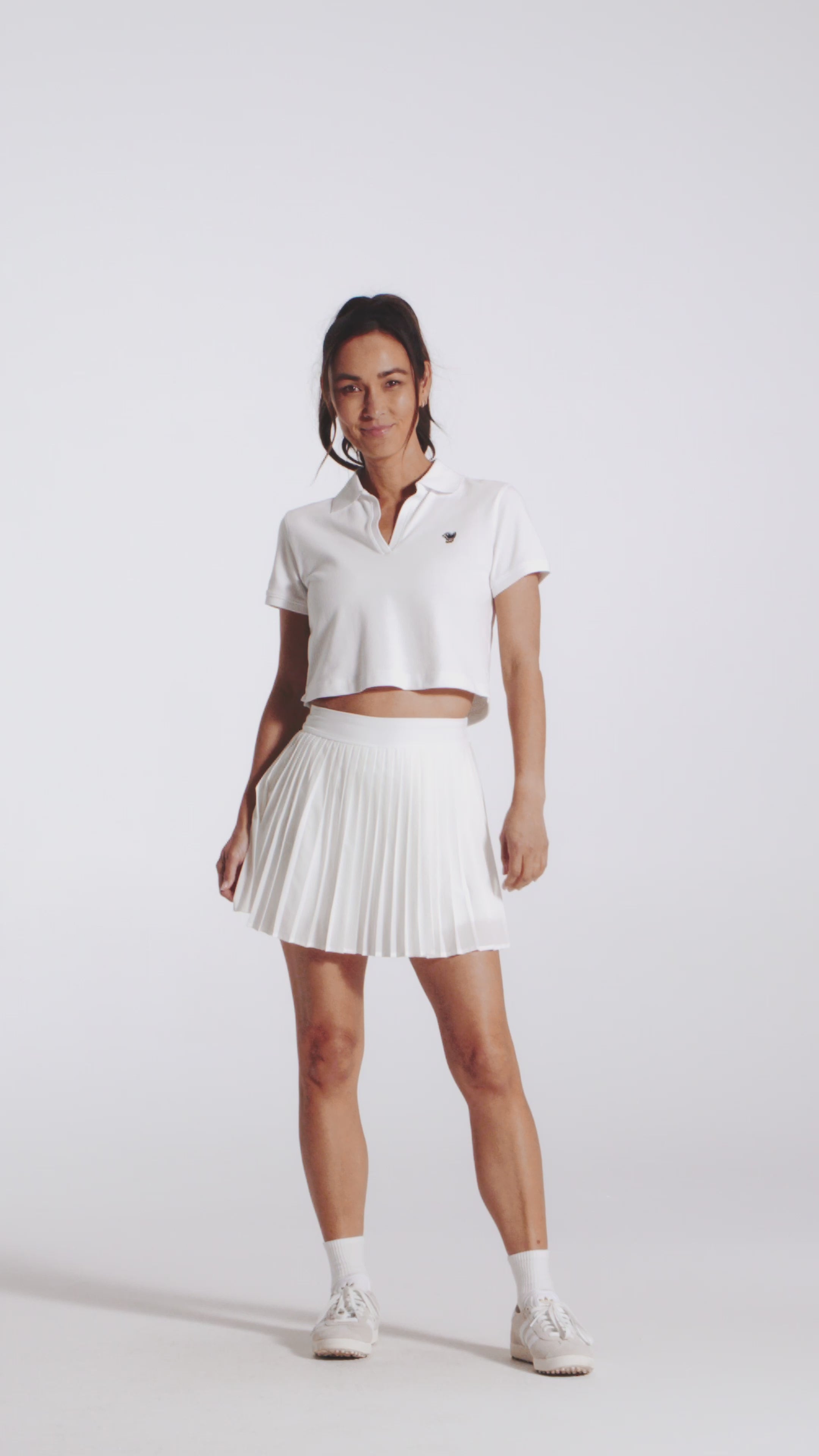Crafted from soft, cotton pique fabric, this ribbed Johnny collar cropped polo brings a fresh edge to classic style—perfect for turning heads on and off the course.